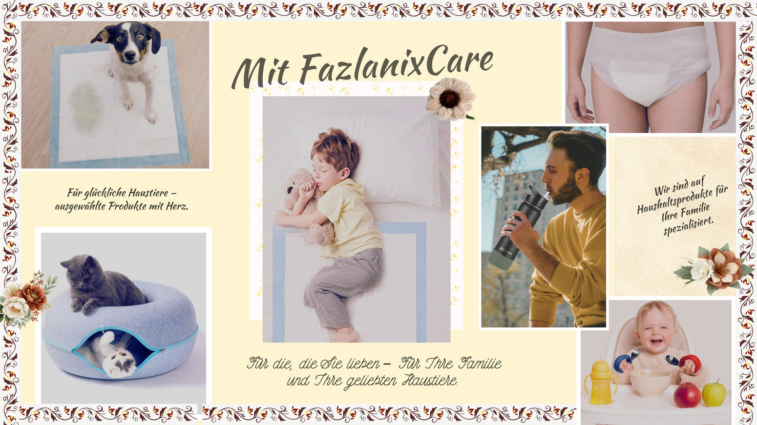 Unsere Produkte sind sorgfältig auf Komfort, Hygiene und Zuverlässigkeit im Alltag ausgelegt, auf die Sie sich verlassen können. Unser Sortiment umfasst saugfähige Inkontinenzeinlagen für Haustiere und Menschen, Wegwerfwindeln, Katzennesthöhlen, Babylöffel- und Gabelsets sowie isolierte Wasserflaschen.